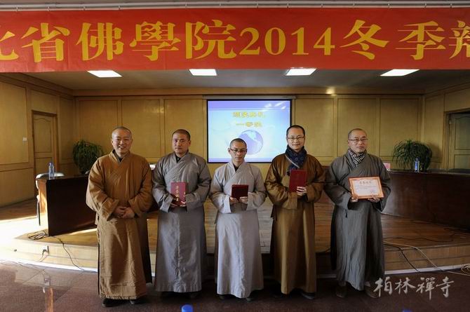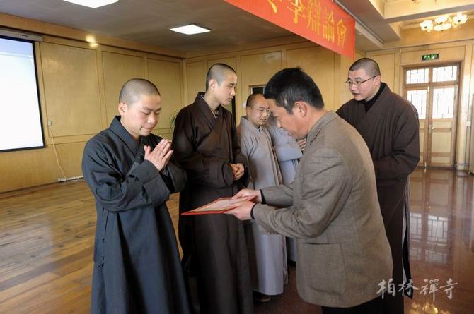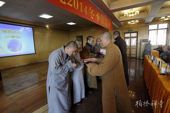 最后院长明海大和尚为这次辩论赛做出中肯的点评。他首先肯定了参赛法师们积极参与辩论活动的热情,也肯定了此次辩论赛的参赛法师无论是从辩论手法、台风掌控还是资料搜集上,都比以往有很大提高。对于大家在赛事中都能够恰当引用佛言祖语来为己方作论证依据这一行为,表示赞叹。但同时也对此次辩论过程中的出现的欠缺点作出指正,并鼓励大家能够广学多闻,勇往直前。最后在热烈的掌声中,评委法师和老师为四个参赛队颁奖,冬季辩论赛圆满落幕。
