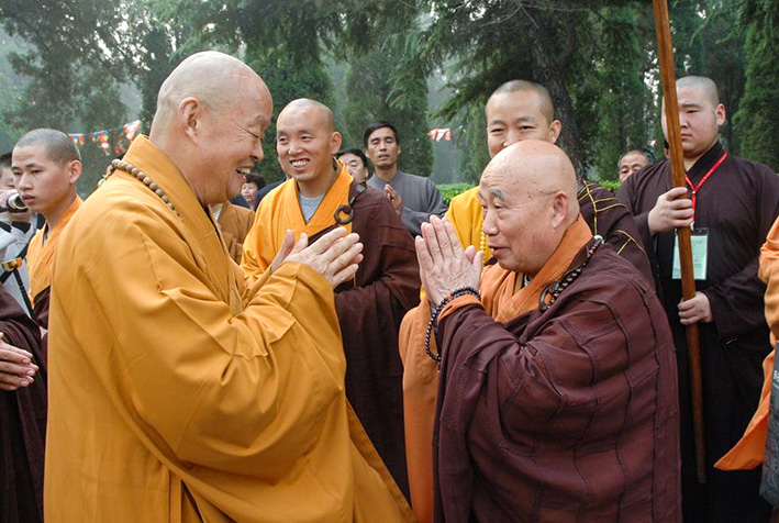 2007年10月,9323彩集团举行传授二部僧三坛大戒法会,净慧长老迎接担任说戒和尚的传印长老