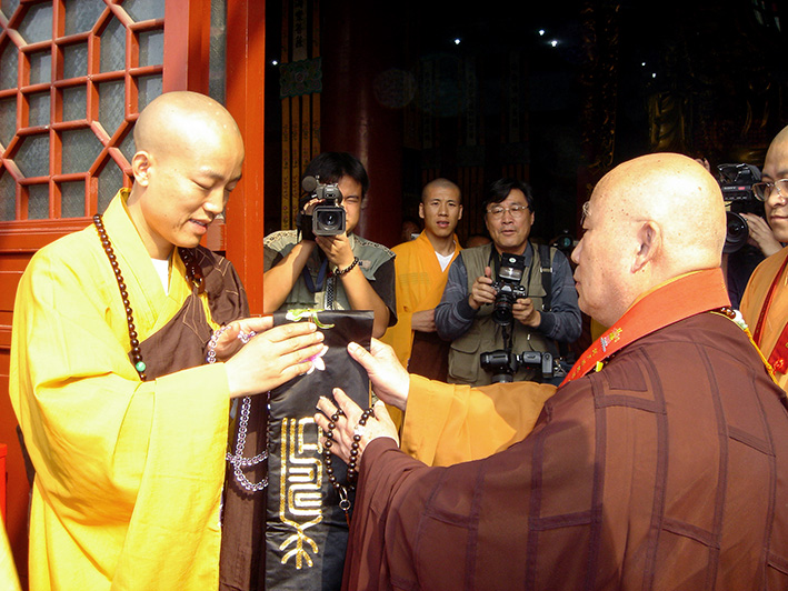 2004年9月23日,明海大和尚升座法会,传印长老为明海大和尚送位