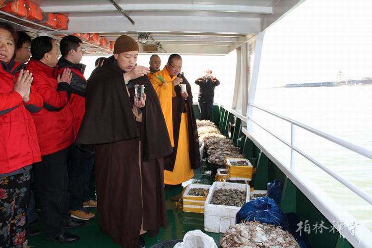2013年清明节期间,河北省佛学院师生六十余人前往秦皇岛北戴河,举行了海上放生法会,放生鱼虾贝蟹等类,来自秦皇岛当地以及周边的四众弟子上百人随喜参加。