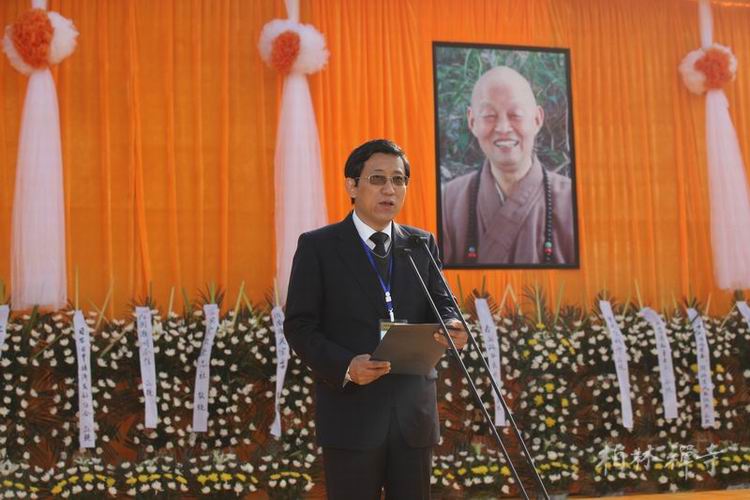 国家宗教事务局副局长蒋坚永宣读中共中央政治局常委、全国政协主席俞正声,中共中央政治局委员、国务院副总理刘延东,原中共中央政治局常委、全国政协主席贾庆林唁电。中共中央统战部二局副局长张天昱宣读全国政协副主席、中共中央统战部部长唁电。湖北省人民政府副省长王君正宣读湖北省委书记李鸿忠、省长王国生唁电。河北省政协副主席曹素华宣读河北省委书记,河北省长张庆伟唁电。