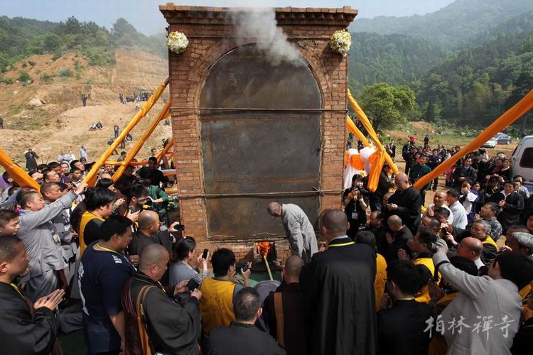 荼毗所用化身窑位于即将开工的佛祖大金塔的选址之地。化身窑前的彩门上,写着“功德圆满”四个大字,两侧悬挂着明海大和尚撰写的挽联“六十年菩提路,卓一副铁脊梁,起弊救衰,弥老弥坚,欲向儿孙立楷则,一朝撒手,可怜几处丛林,空遗鱼板萧萧思长老;八十岁老古锥,荷五宗之法脉,倡生活禅,无怨无悔,要为先圣续薪传,而今西去,那堪庭前柏子,犹自斜晖脉脉待公还。”