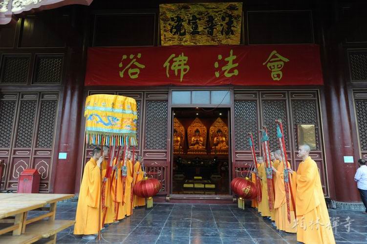 清晨,千余名信众在万佛楼举行浴佛仪式。整个上午,有成千上万的信众在释迦牟尼佛太子像前,恭敬礼佛,香汤灌浴,古佛道场沉浸在喜庆之中。