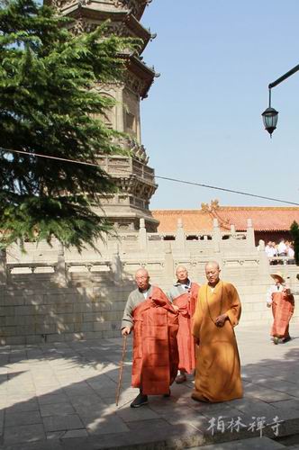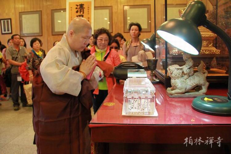 法山长老一行在明海大和尚陪同下朝礼祖师塔、参观寺院并在万佛楼礼佛,之后,到问禅寮瞻礼净慧长老灵骨舍利。