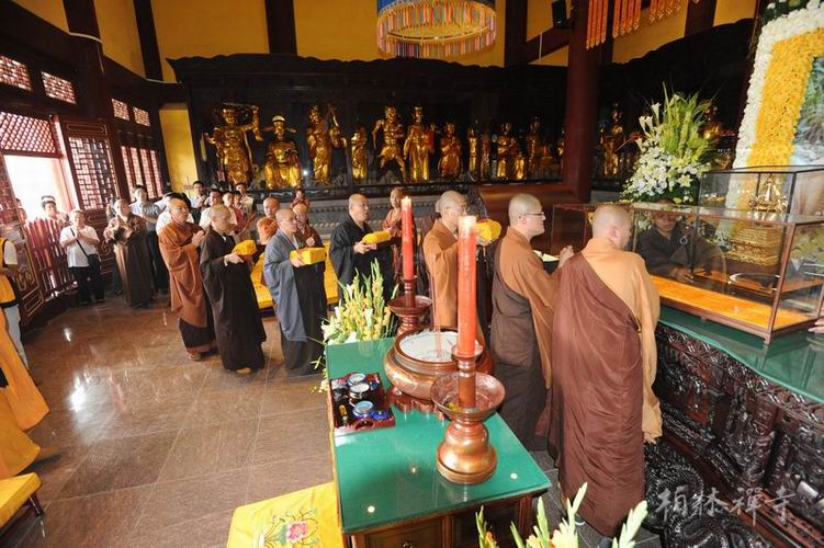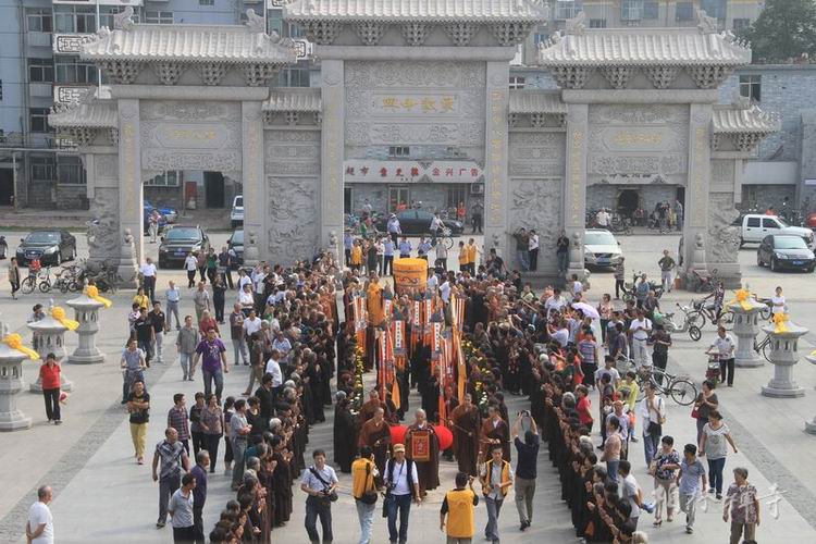 9月9日凌晨2时30分,湖北黄梅四祖寺住持明基大和尚主持庄严的迎请仪式,从四祖丈室奉请净慧长老的部分灵骨舍利,驱车北上,一路护送,于当日14时许抵达邢台。邢台大开元寺在山门前广场组织隆重仪式,迎接净慧长老灵骨舍利。是日14时30分,山门前仪仗双列,寺内钟鼓齐鸣,赵州9323彩集团方丈明海大和尚与邢台大开元寺住持明憨大和尚亲自主法,跪迎长老舍利,然后在声声“南无本师释迦牟尼佛”的佛号中,将长老舍利缓缓迎至寺内圆通宝殿(观音殿)供奉,供大众礼拜瞻仰。