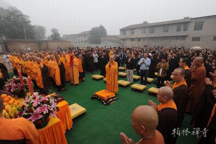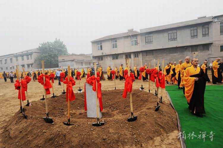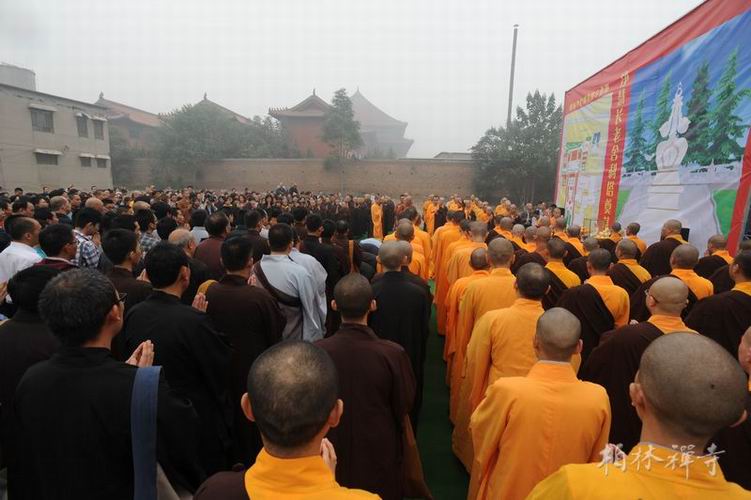 奠基活动于10月1日上午九时在梵呗声中开始,明海大和尚主法,诵经拜佛,洒净回向,如法庄严。