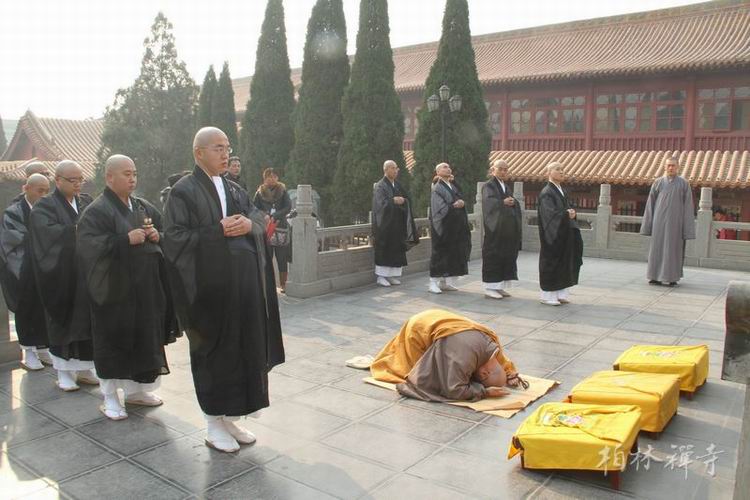 明玉法师陪同阿部浩三一行朝礼祖师塔,巡礼寺院并到万佛楼礼佛。