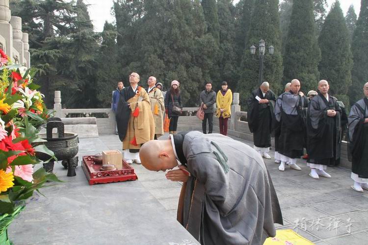 午斋之后,明海大和尚在指月楼会客厅会见日本客人并互赠纪念品。临行前,明海大和尚与日本客人在祖师塔前合影。