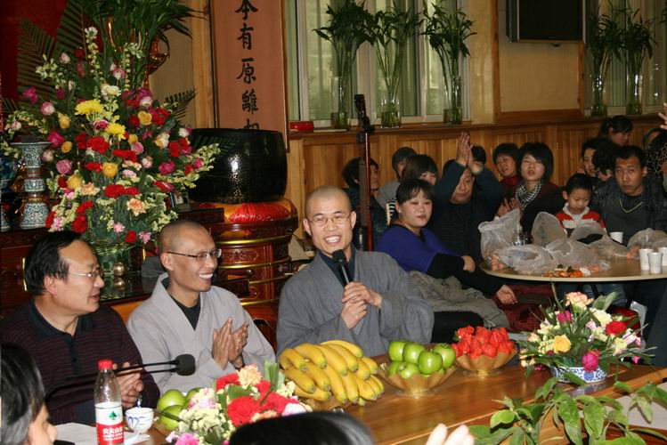 2012年1月15日(农历辛卯年腊月二十二)下午,河北省佛教协会与真际禅林共同举行迎新春茶话会。真际禅林敞开山门,佛殿布置庄严,来自石家庄市及周边地区的近三百位居士,在几十张圆桌前团团围坐,大家双手合十虔诚念诵“观世音菩萨”圣号。