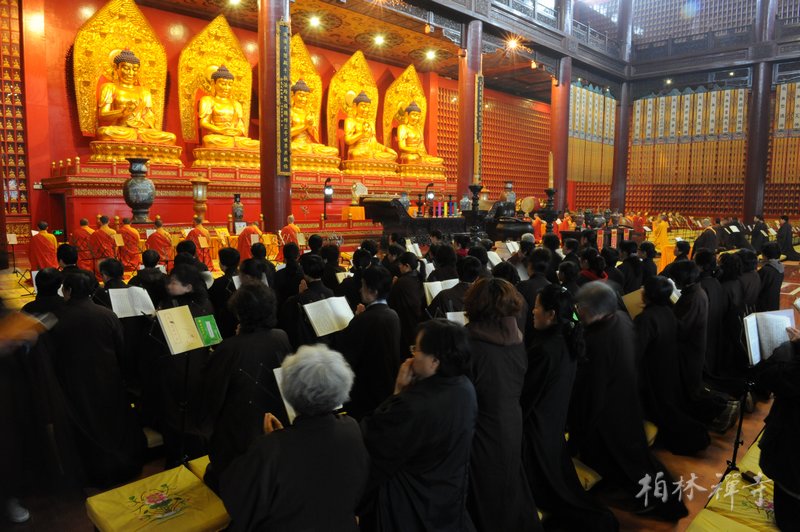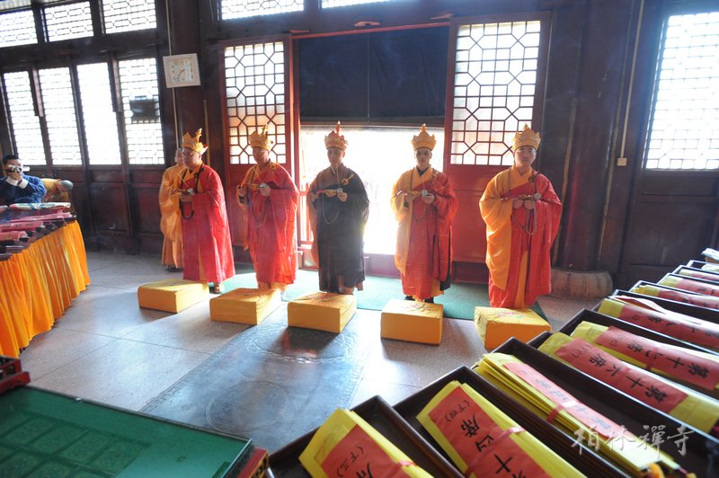 白天与会者在万佛楼拜《梁皇宝忏》、在祖师殿、伽蓝殿等殿堂设诸坛口诵《华严经》、《楞严经》等重要经典,晚间在文殊阁施放瑜伽焰口,上供下施,超度亡灵。