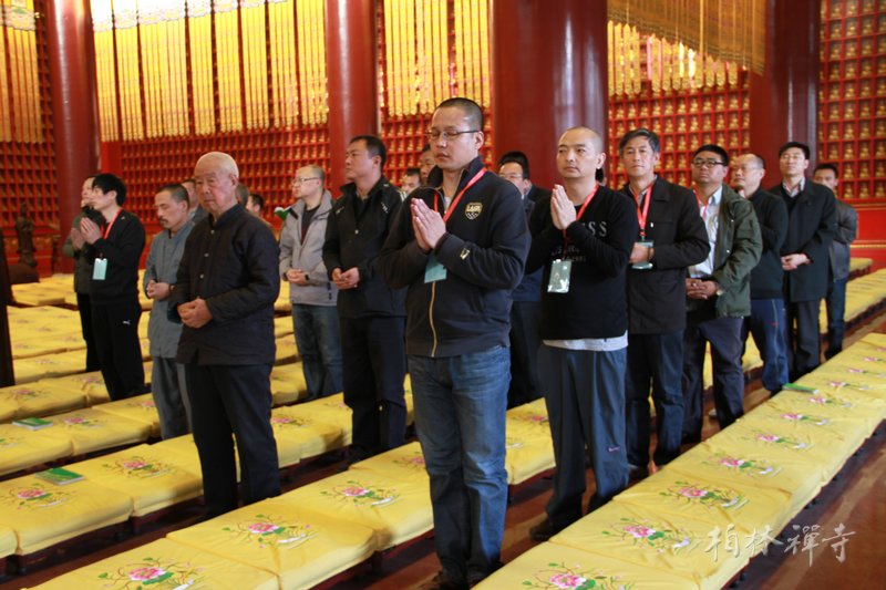 4月6日下午三时左右,参访团到达寺院,四点三十分,刚刚放下行囊的学员便在梵乐声中走进万佛楼,随众上殿。