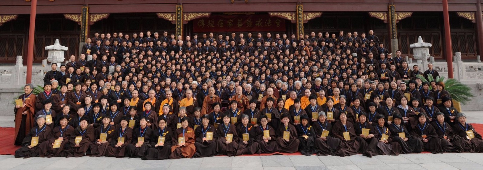 本次法会由明基法师为得戒和尚,常照法师任羯磨阿阇梨,明怀法师任教授阿阇梨。共有来自二十几个省市的信众397人得受在家菩萨戒。