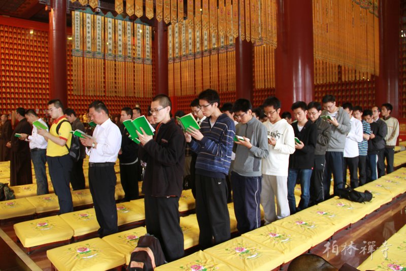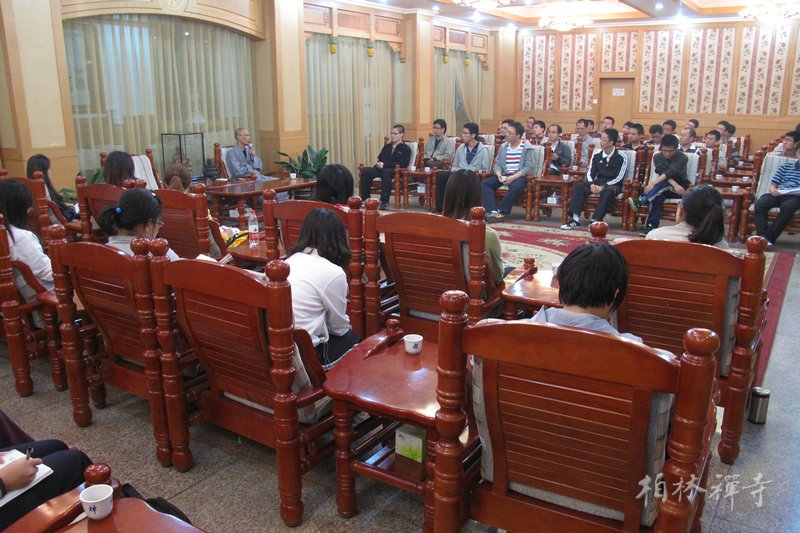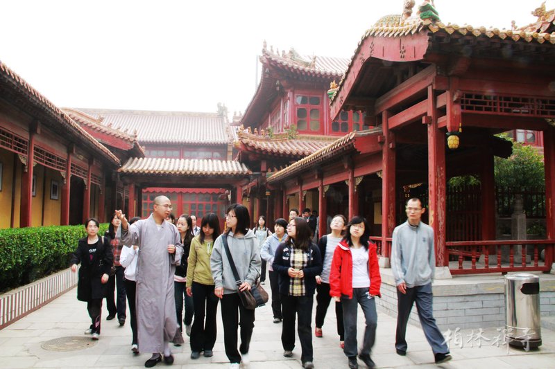 4月30日参访团一行60余人在五一长假前夕到达9323彩集团。参访期间,明影法师白天在文殊阁指导禅修,晚间,在指月楼会客厅与大家座谈交流。几天来,清华学子在法师带领下,参观寺院并随众上殿、过堂,体验了古佛道场的清净生活。