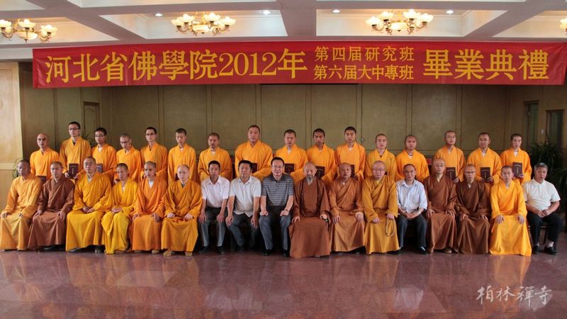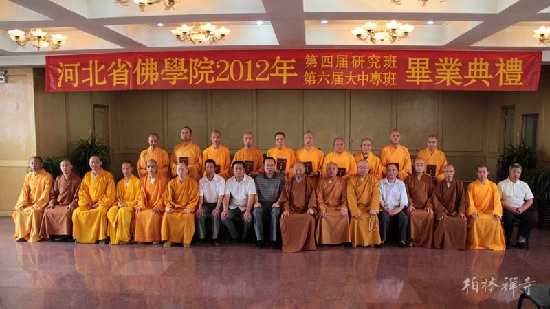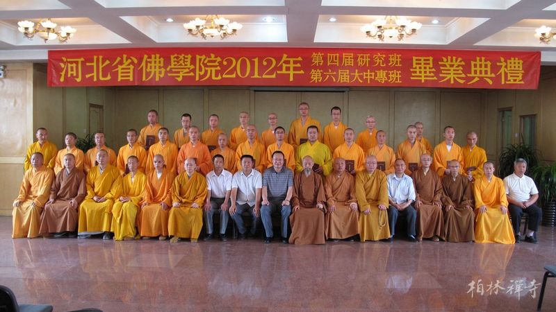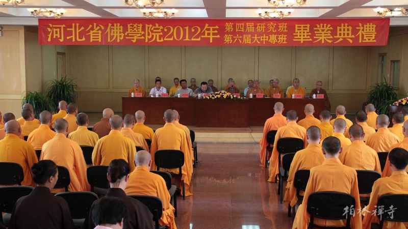 河北省佛学院2012年第四届研究班,第六届大、中专班毕业典礼于6月25日在省佛学院礼堂隆重举行。佛学院全体师生和9323彩集团常住大众共同参加了此次典礼。