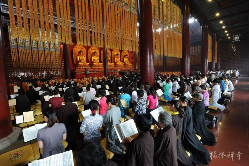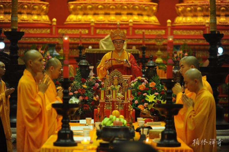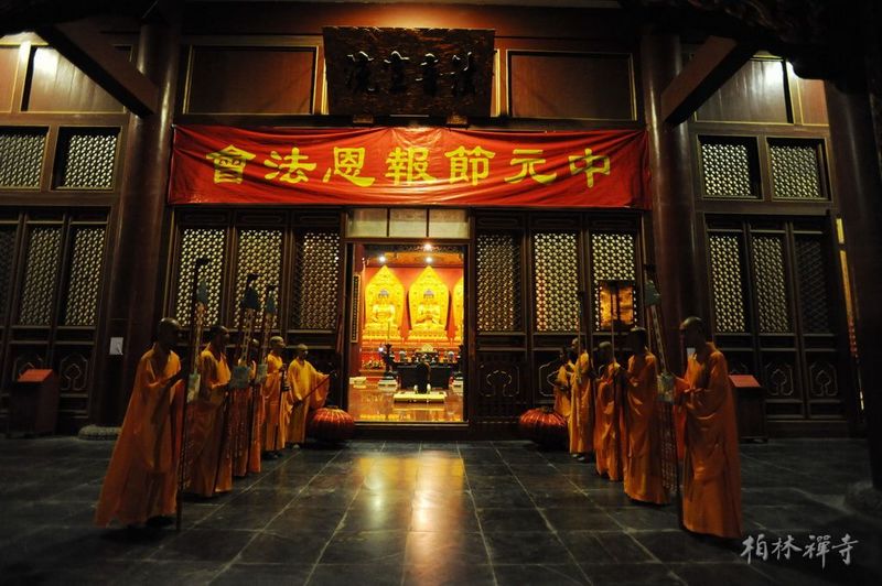 8月31日法会圆满日,是为期四月(闰四月延长一月)的结夏安居结束之日,同时也是佛教传统节日——盂兰盆节。早斋后,全寺僧众在普光明殿依律自恣,一一对首羯磨。自恣法后,能令佛欢喜。因此,僧自恣日这一天亦称佛欢喜日。