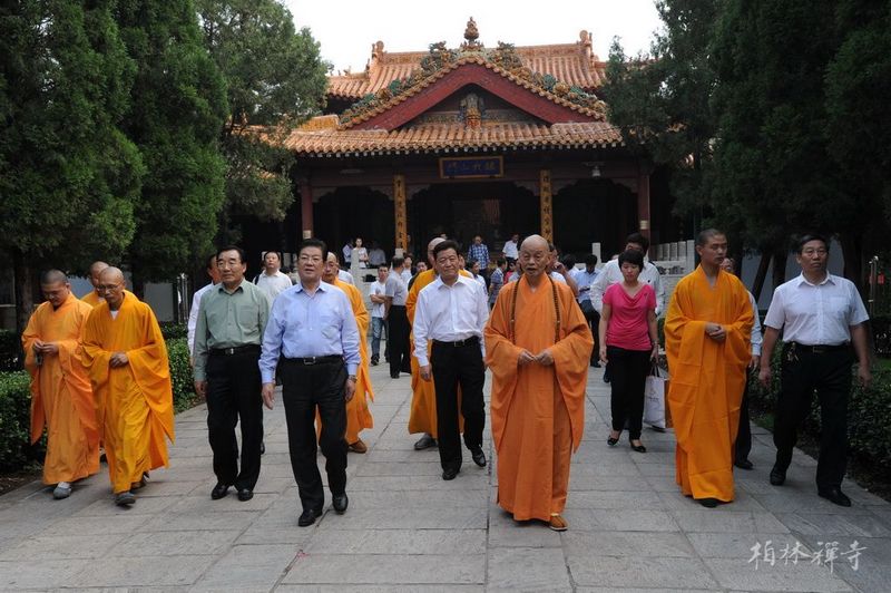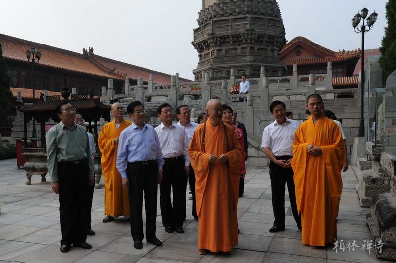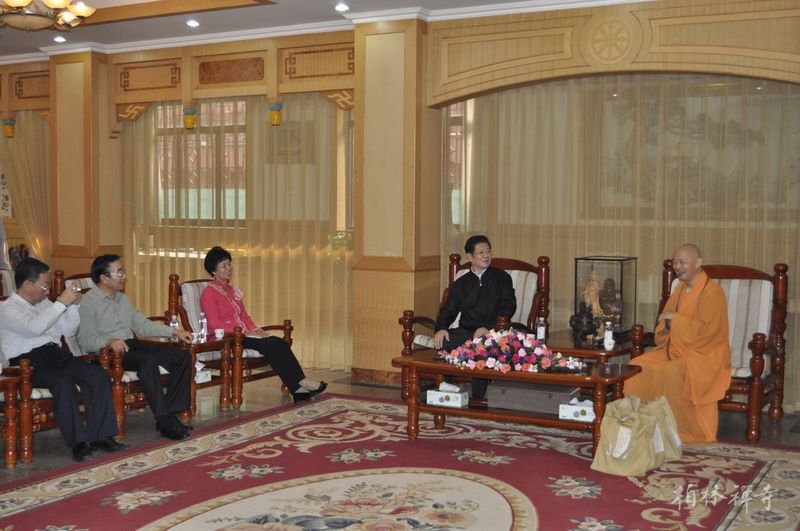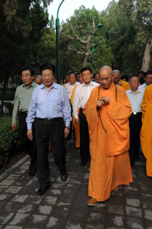 净慧长老陪同王兆国副委员长和张庆黎书记一行参观了赵州塔、普光明殿、观音殿和万佛楼,随后,在指月楼会客厅亲切座谈,座谈中王兆国副委员长高度评价了佛教在人类历史发展中的重要价值。座谈后,净慧长老向王兆国副委员长及随行人员赠送了礼品。