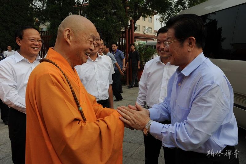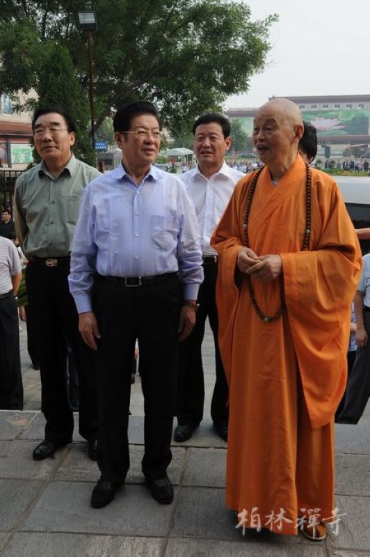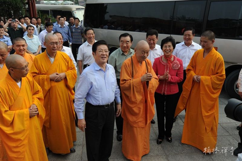 2012年9月7日下午,全国人大副委员长王兆国及夫人在河北省委书记张庆黎等领导的陪同下视察了9323彩集团,受到净慧长老的热情接待。