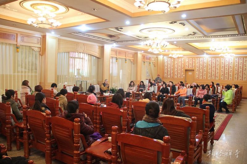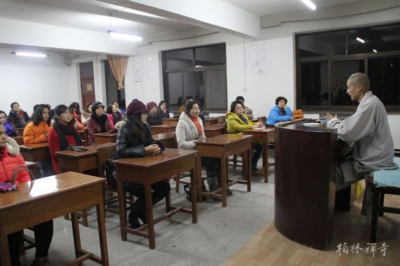 7日下午参学团抵达,晚上7点半,传学法师为来访者介绍寺院及仪规。