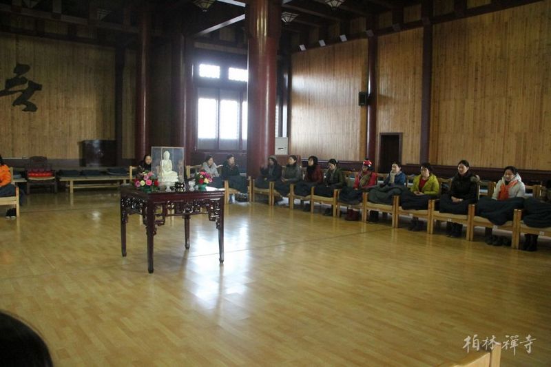 9日下午2点,学员们在指月楼会客厅聆听了明海大和尚“三度修持”佛法的开示。晚上7点,明海大和尚在方丈室传授三皈依,五名学员正式加入佛教大家庭,成为三宝弟子;其他学员随喜参加仪式,成为皈依的见证者。