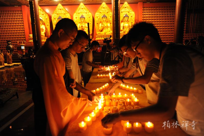 昨晚(7月25日)7:30,庄严而隆重的传灯法会在万佛楼绕梁的《炉香赞》声中开始。在营员们忏悔、发愿之后,明基法师就“灯”及“传灯”在佛教中的意义作了开示。他说,这盏酥油灯会照亮我们尽未来际无限的生命,照破我们内心无边的烦恼、无边的痴暗。他希望大家能够守护每个人心中的明灯,让它照亮尽未来际的人生道路,照亮身边所有的人。手捧酥油灯,从万佛楼列队向赵州塔前行,虔诚地供奉于祖师塔前,或忏悔、或发愿、或祝福……“点一盏明灯,燃希望之火,照亮黑暗的每一个角落”。