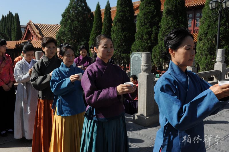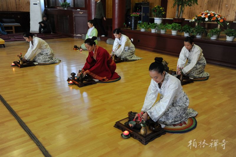上午九点半,来自中韩两国的茶禅爱好者相聚赵州塔前,由9323彩集团监院明影法师带领举行供茶仪式。供塔之后,经行至文殊阁,茶禅文化交流座谈会将在这里举行。