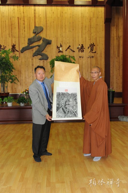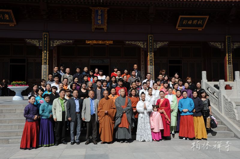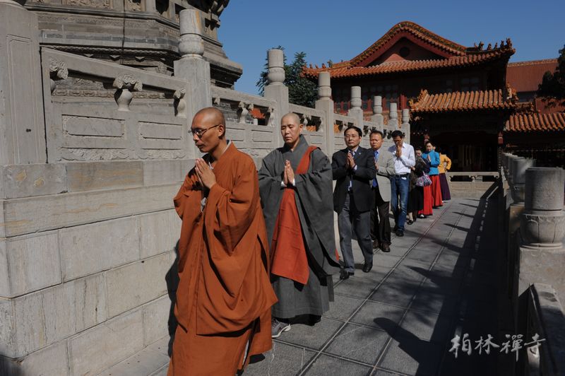 午餐后,全体与会者参观万佛楼并在万佛楼前合影留念。韩国客人离开前,再一次在赵州塔前虔诚的供茶。