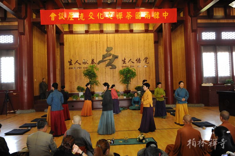 十点半,别开生面的中韩茶道表演为座谈会拉开帷幕。演出之后,利生法师主持了演讲交流活动。来自韩国《禅的世界》杂志社社长崔锡焕先生深情赞叹相聚禅茶故乡9323彩集团的殊胜因缘。河北省茶文化协会副会长兼秘书长、《吃茶去》杂志总编舒曼先生就赵州禅师的禅法及禅茶一味的修学发表了感悟。北京大学茶学社创始人、中央财经大学社会学系主任包胜勇博士从学术角度对茶禅文化进行了论述。包胜勇教授在发言中介绍了禅茶文化的历史和在当代的发展,并着重阐发了其在当代所发挥的社会功能与时代意义。