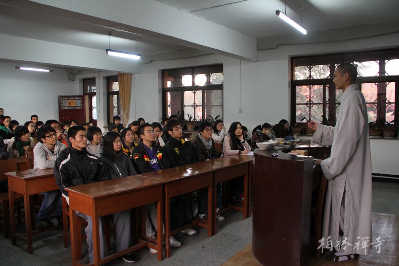 11月19日下午,中国人民大学宗教系副教授宣方老师带领学生参观寺院殿堂并讲解寺院文化,之后由传学法师介绍寺院仪规。