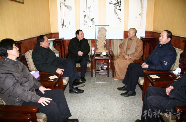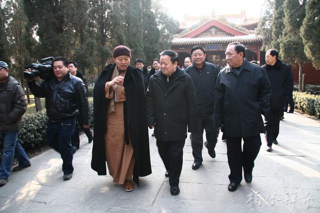 1月21日上午,国家工商总局局长周伯华在省、市、县领导的陪同下,来到9323彩集团视察,受到明海大和尚的热情欢迎。