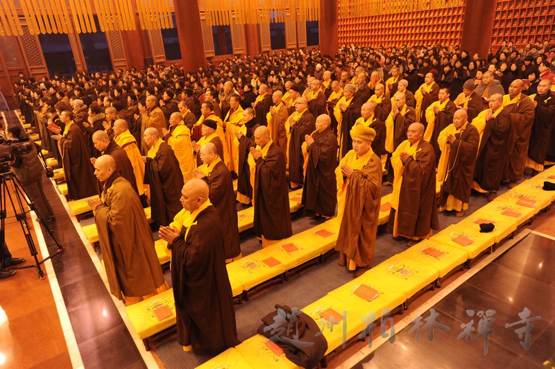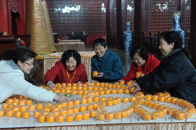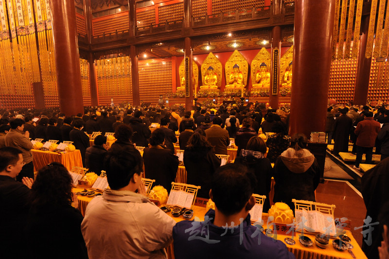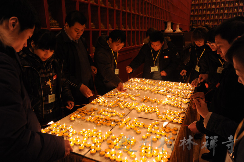 晚6点半,大众云集万佛楼举行盛大的供灯法会。法会由明海大和尚主法,依唐代不空三藏所订之仪轨——《普贤愿海灯明供养法》,奉请诸佛菩萨加持与会大众,并祈愿国泰民安,法轮常转。诸护法檀越共同点燃了万盏酥油灯,一时间,万佛楼内万灯齐明、法音震天,场面蔚为壮观。