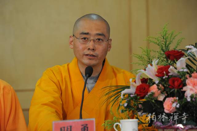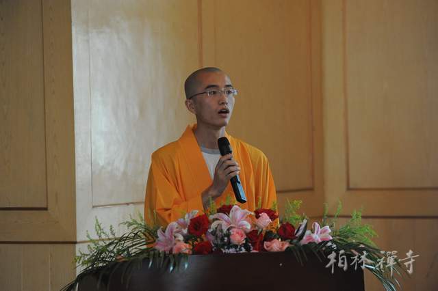 在学僧代表发言后,佛学院副院长兼教务长明勇法师代表佛学院教务处欢迎新一届学僧的到来,并就教务处的具体工作提出几点要求。同时,他还殷切的希望新一届学僧们能尽快的适应到新的学习环境中来。