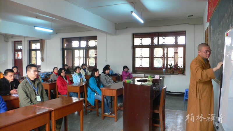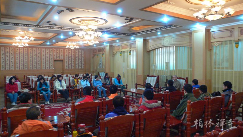 20日下午,观行法师为来访者介绍寺院仪规并带领大家参观祖师塔及各殿堂。晚上,随众进行禅修活动。