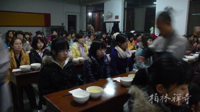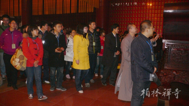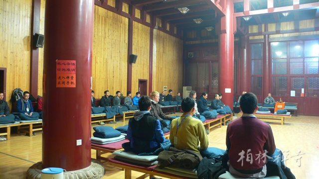 12月4日下午,崇正法师带领学生们参观万佛楼并讲解了寺院规矩,晚上在普贤阁体验禅修。