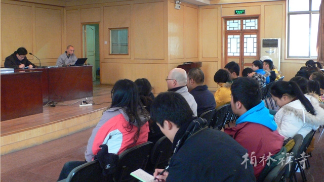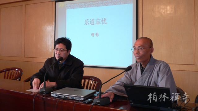 12月5日上午,明影法师在佛学院礼堂做了题为《乐道忘忧》的讲座并与大家互动交流。