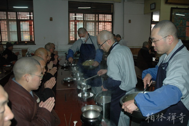 参访期间,他们和寺院常住大众一起上殿、坐禅、过堂。23日,他们在禅堂和佛学院学僧按禅七作息时间体验了全日的禅修生活。24日上午,寺院安排体验团出坡劳动。之后,在佛学院和师生们分享了修行心得;中午,并为大众做饭、行堂。