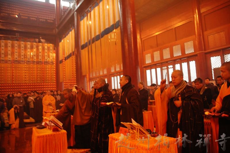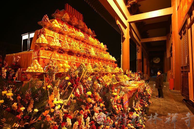 凌晨3点,四众云集,在本寺退居净慧长老、明海大和尚、白洛上师的主持下,举行了庄严的斋天仪式。
