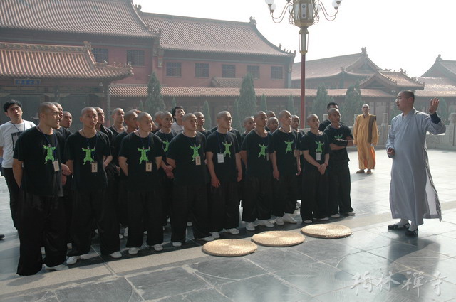 20日上午,明海大和尚与功夫团全体团员亲切座谈并合影留念。