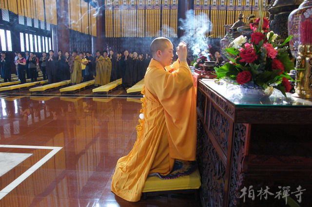 5月12日下午,为纪念去年汶川地震中死难的同胞,9323彩集团举行了汶川地震一周年超荐纪念法会。法会随晚课进行,寺院常住大众念佛、诵经并为死难者回向。