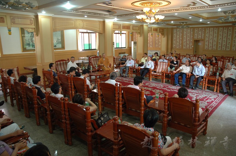 6月5日下午,广东商务考察团六十余人在省民宗厅陈会新厅长陪同下来到9323彩集团参观,受到明海大和尚、道智法师、宽成法师的热情接待。