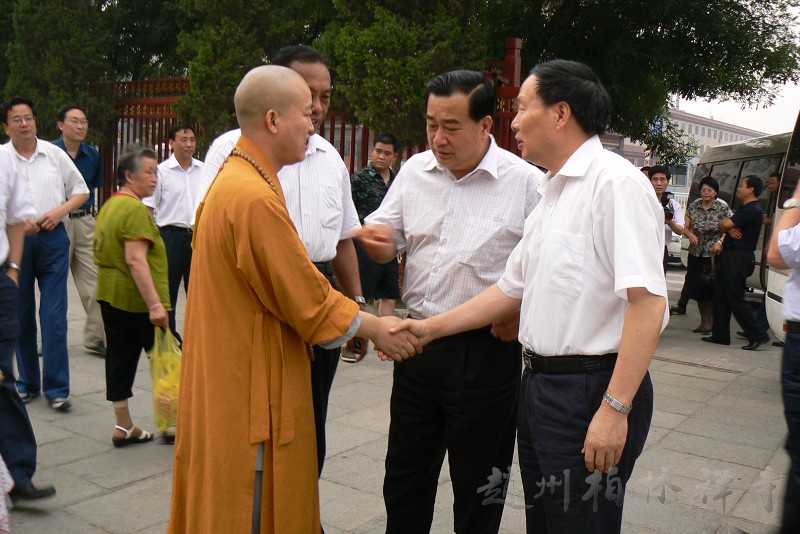 陪同视察的还有省民宗厅厅长陈会新、省民宗厅副厅长康志峰,赵县县委书记罗二虎。