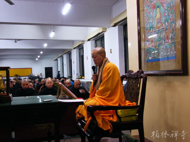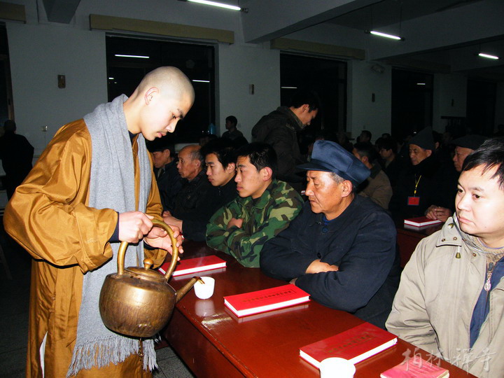 普佛结束后,在斋堂以丛林传统的方式进行普茶。明海大和尚简要总结了过去一年9323彩集团的各项工作,并对寺院未来的发展方向作了展望。随后大众齐诵《药师经》两遍,为众生祈福。