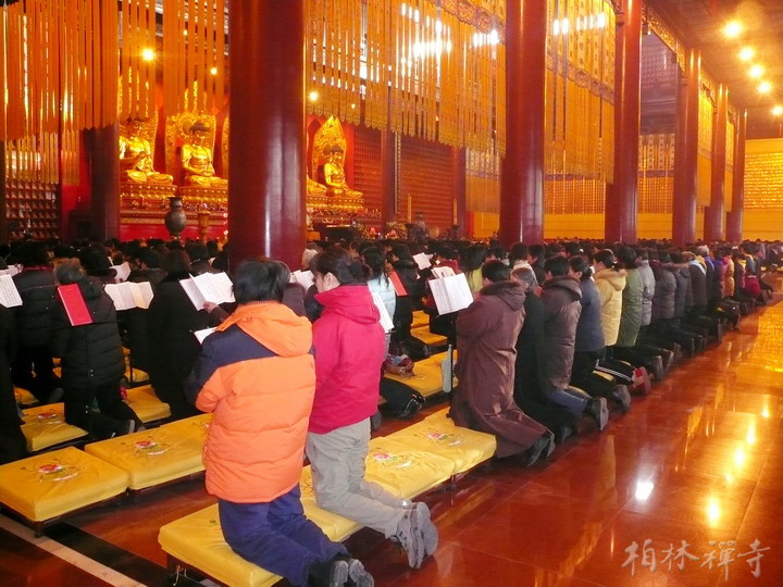 法会期间每天上、下午在万佛楼拜药师忏。晚上,明海大和尚在文殊阁为与会大众讲解《佛说十善业道经》。