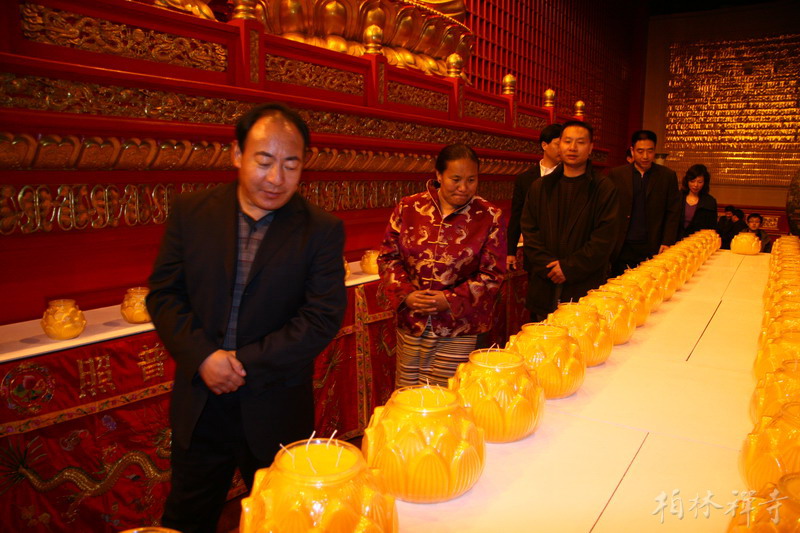 大家先在方丈寮座谈并互赠纪念品,随后参观了寺院各处。在万佛楼,十一世班禅的父母礼佛、上香,之后观看了为3月9日般若万灯法会准备的酥油灯,并对酥油灯的质量表示了赞赏。