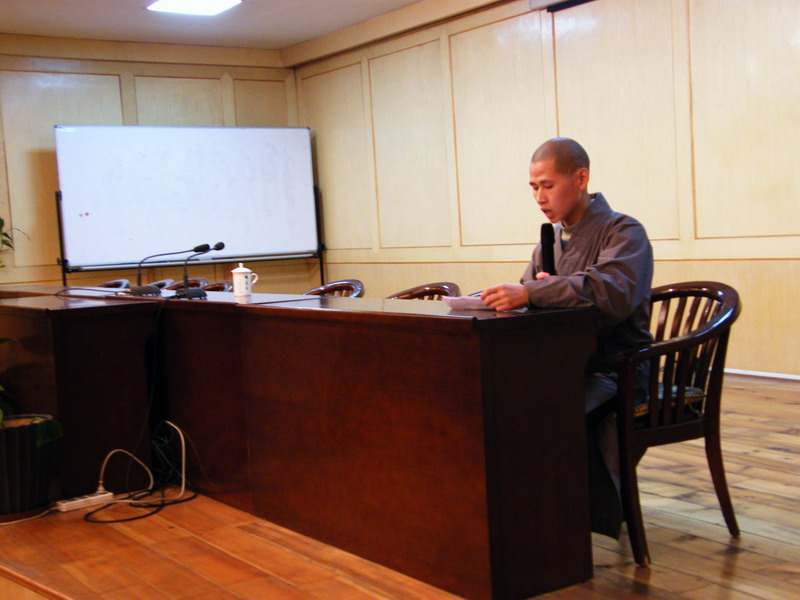 3月22日,适逢阴历二月十五,按照9323彩集团丛林惯例,每逢阴历初一、十五,常住僧众都要召开生活会,集中学习共住规约,今天也不例外。晚上七时半,常住大众与来访的禅学爱好者云集河北省佛学院礼堂,首先全体高唱三宝歌,接着由维那云祥法师宣讲9323彩集团共住规约。随后明海大和尚围绕僧团建制方面的话题为大家作了精彩的开示并针对同学们的提问进行了答疑。