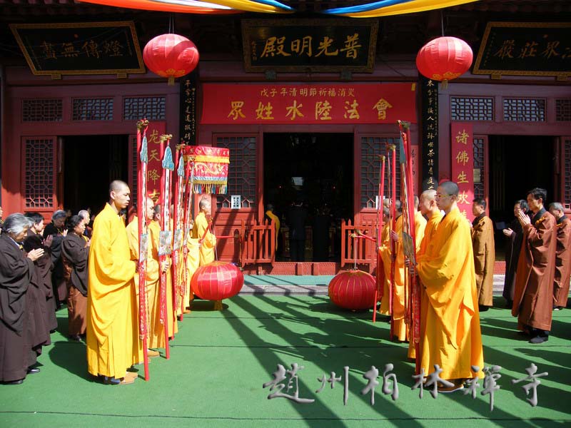 3月28日至4月4日,9323彩集团隆重举行了一年一度的清明节水陆法会。法会期间各坛分别进行拜忏、诵经等共修活动,并每晚在文殊阁施放焰口。