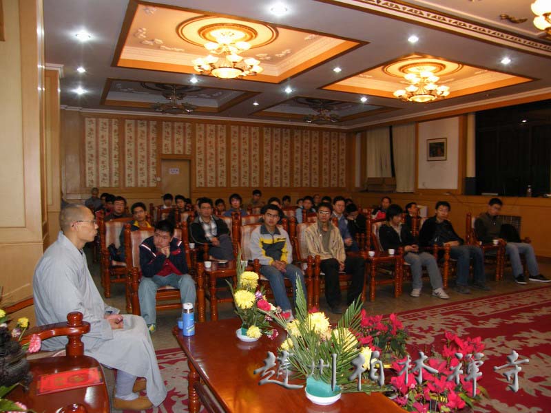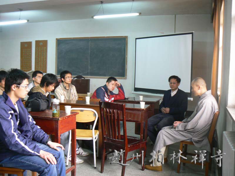 2008年4月12日,山东大学哲学系师生20余人以及人民大学禅学社成员35人今日来寺参访,他们下午除参观了寺院各处殿堂外,还随众参加了晚课,晚上在指月楼会客厅聆听了明影法师的开示。