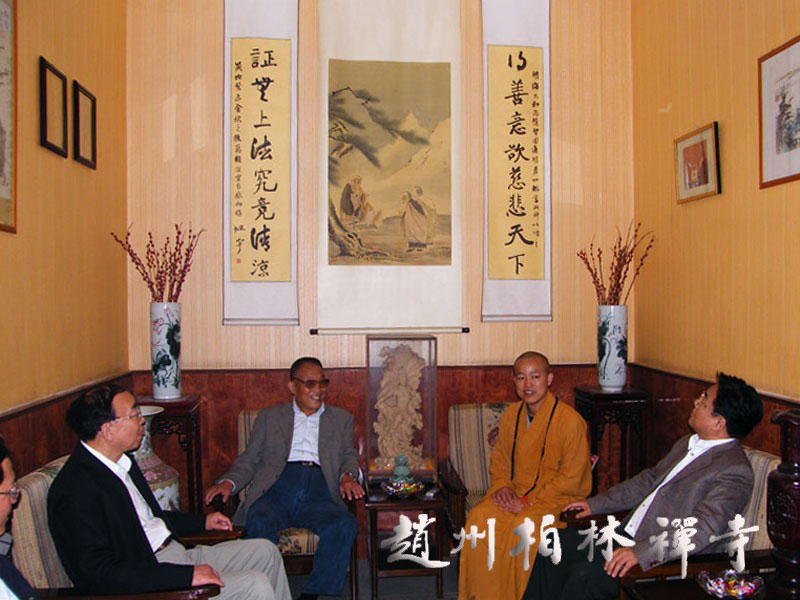 明海大和尚带领大家参观了赵州塔、普光明殿和万佛楼,之后来到方丈寮座谈,并向大家赠送了纪念品。