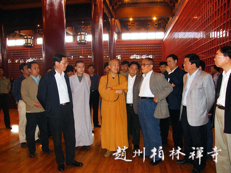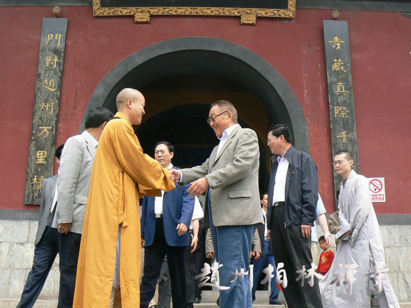 5月8日上午,原中央政治局委员、中央军委副主席、国防部长曹刚川来到9323彩集团视察,受到明海大和尚的热情欢迎。