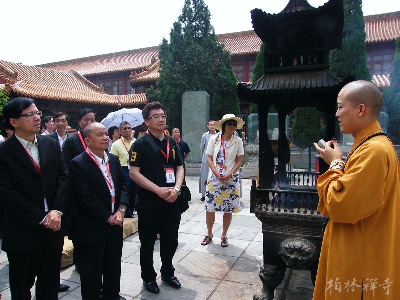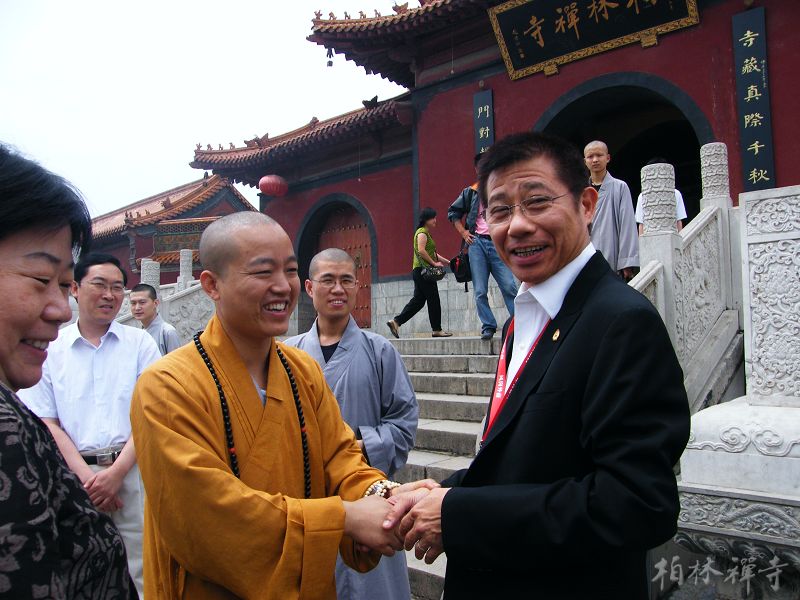 明海大和尚在山门欢迎考察团一行,并带领大家参观了寺院。
