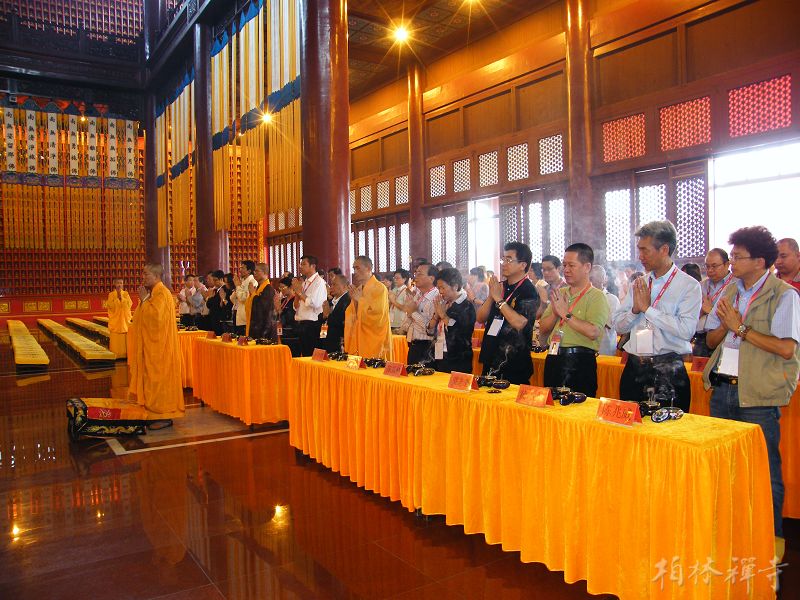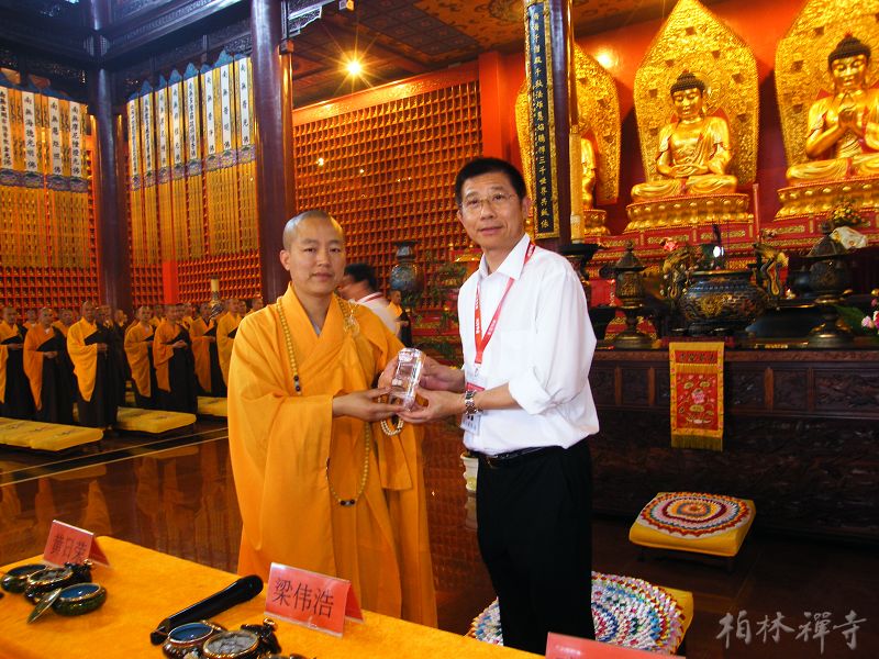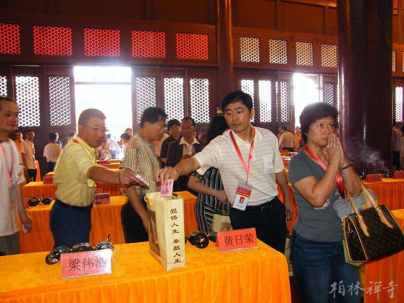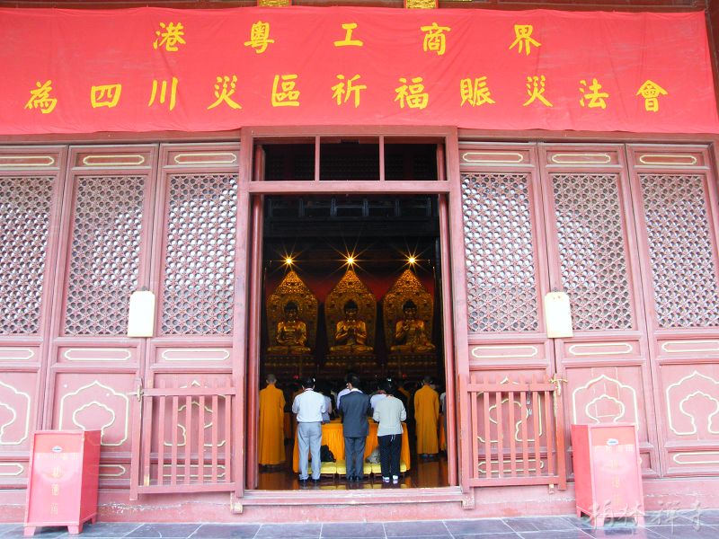 随后,在庄严肃穆的气氛中,“港粤工商界为四川灾区祈福赈灾法会”在万佛楼举行。明海大和尚带领全寺僧众和来访的企业家们一起为灾区众生祈福,祈愿灾区人民尽早渡过难关、重建家园;祈愿祖国国泰民安,风调雨顺。法会后,由团长梁伟浩先生带头,大家纷纷献出爱心,为灾区的重建工作捐款。